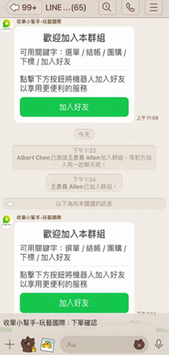 群組團員喊單結單超便利